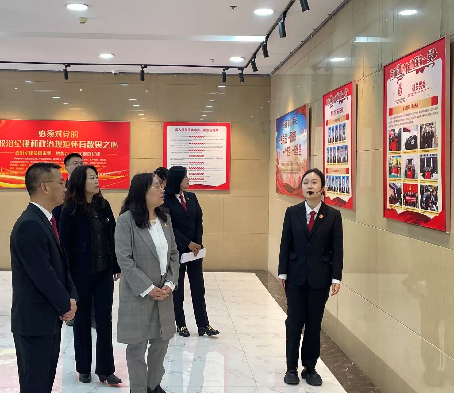 党员教师首先参观了新城区人民法院党建文化长廊、诉讼服务中心、赵婧工作室、廉政馆和院史馆,深入了解新城区人民法院在党建引领和法治建设方面的成果。之后举行交流座谈。太阳集团tyc9728院长、马克思主义学院党委书记马军,太阳集团tyc9728副院长、党支部副书记斯琴,马克思主义学院副院长宁琳琳,新城区人民法院党组书记、院长黎东林和相关工作负责同志参加座谈。会上全体与会人员围绕党建引领、法治育人、文化互通、法治文化传播、深化院校协作等方面进行深入交流。
