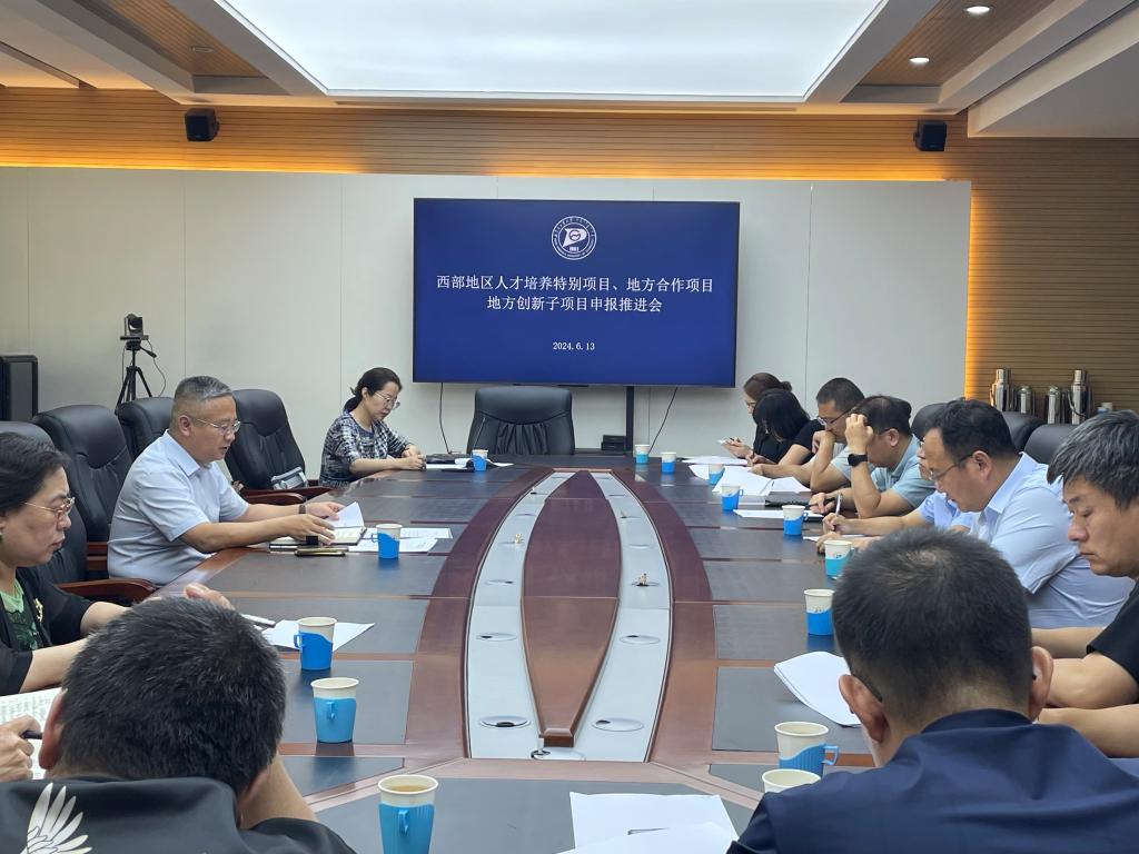 2024年6月13日于明德楼205召开“西部地区人才培养特别项目、地方合作项目创新子项目”工作推进会。校党委委员、副校长郭洪飞参加并讲话,国际合作与交流处处长马军主持。发展规划处、机械工程学院、能源与动力工程学院、化工学院、电力学院和理学院负责人及相关人员参会。