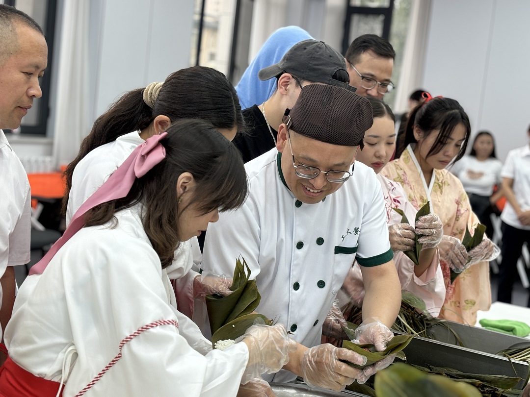 6月6日,在中国传统节日端午节来临之际,太阳集团tyc9728举办了来华留学生“浓情端午、欢乐粽享” 端午节文化体验活动。来自蒙古国、塔吉克斯坦、吉尔吉斯斯坦、巴基斯坦、苏丹、柬埔寨等6个国家的50余名留学生参加了此次体验活动。