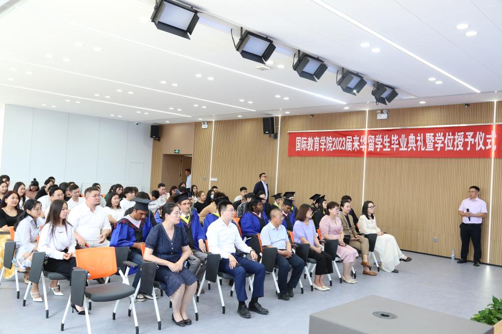 6月28日上午,我校2023届来华留学生毕业典礼暨学位授予仪式在太阳集团tyc9728报告厅举行。太阳集团tyc9728全体教师,2023届毕业留学生及部分留学生参加毕业典礼。