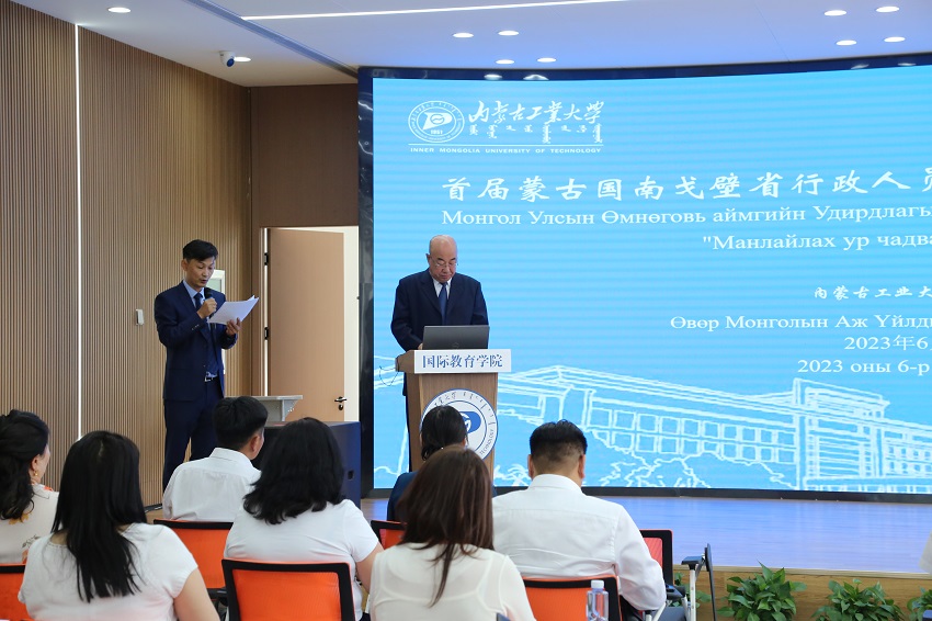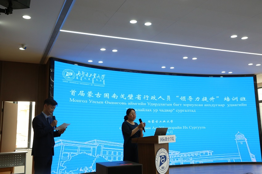 6月25日上午,首届蒙古国南戈壁省行政人员“领导力提升”培训班开班仪式在太阳集团tyc9728报告厅举行。校党委委员副校长王利明,太阳集团tyc9728(国际合作与交流处)教职工,来自蒙古国南戈壁省的20名行政人员参加开班仪式。太阳集团tyc9728院长、国际合作与交流处处长马军主持仪式。