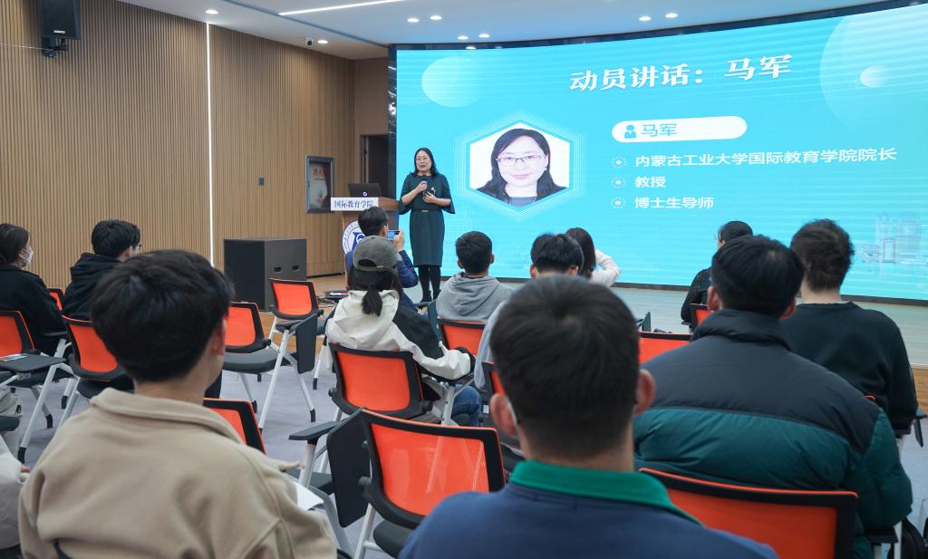 宣讲会上,国际合作与交流处处长马军教授做动员讲话,马军通过分享自身经历分析了国际交流的重要性,并希望同学们充分利用学校优质国际化教育资源和平台,拓宽国际视野,更好地认识世界、提升自我能力。
