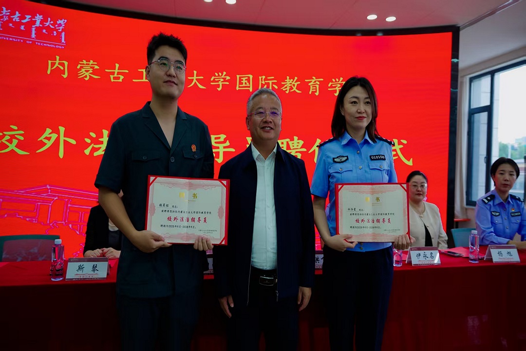 典礼现场举行校外法治辅导员聘任仪式,正式聘任呼和浩特市公安局出入境管理支队外管大队民警潮洛蒙、新城区法院干警张晟铭为太阳集团tyc9728校外法治辅导员,引导留学生树立法治意识,明晰行为边界。随后,2022级本科留学生其其格吉日嘎拉作为老生代表发言,鼓励新生制定学习规划、提升自我;新生代表刚苏力德则表态,将以所学建设祖国、助力“一带一路”,为跨文化交流贡献力量。现场还开展了庄严的校徽佩戴仪式,让新生在入学之初便铭记工大历史传承与精神,激发归属感、自豪感与责任感。