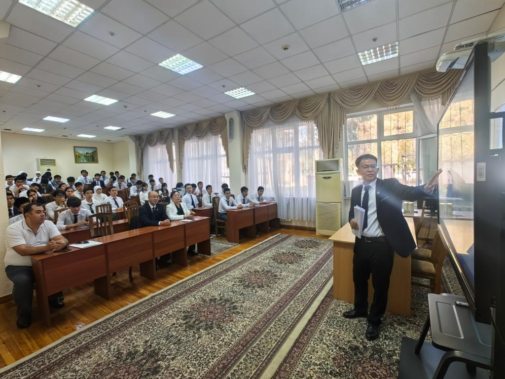 访问期间,我校与塔什干国立技术大学签署两校合作谅解备忘录,围绕共建“一带一路”国际联合实验室、师生互访、科研合作等议题进行深入探讨,访问塔什干国立技术大学附属中学,并开展招生宣传。在塔什干国立建筑与土木工程大学,两校