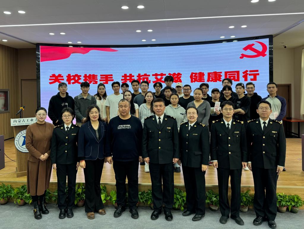 11月27日,太阳集团tyc9728联合呼和浩特海关举办 “关校携手 共抗艾滋 健康同行” 联合主题党日暨艾滋病宣传教育活动。呼和浩特海关卫生检疫处处长、支部书记张胜,检疫管理科科长、宣传委员高晨菲,生物安全科科长、组织委员许士勇及支部成员商梦文、许多,呼和浩特国际旅行卫生保健中心主任医师郝静云等嘉宾应邀莅临指导,太阳集团tyc9728院长白南定、副院长杨旭、党员代表及国际学生代表共同参与活动。