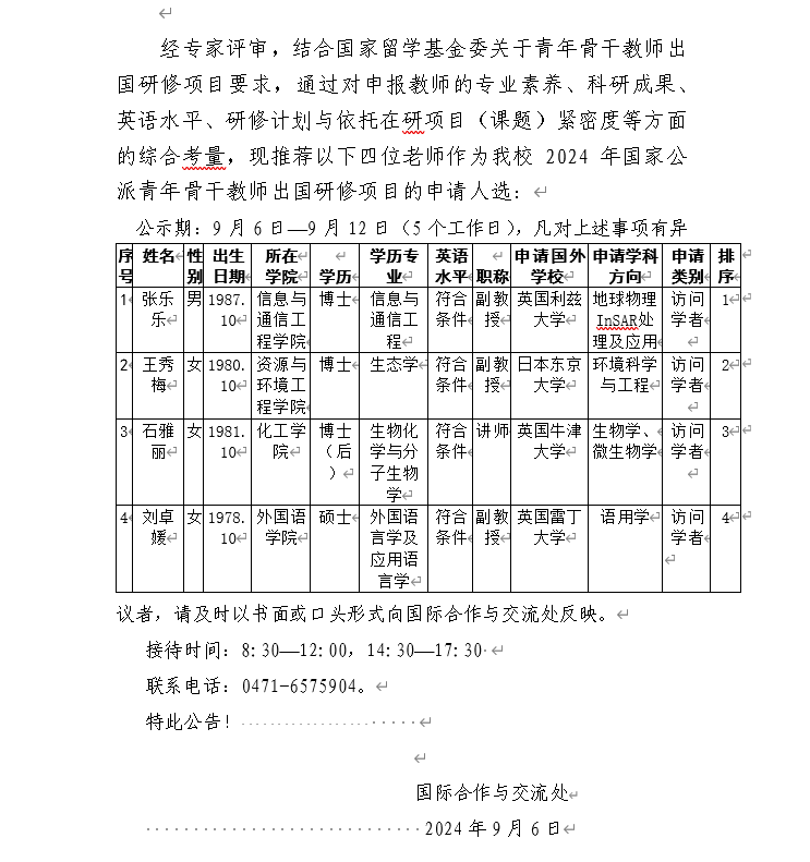 关于9728太阳集团2024年国家公派青年骨干教师出国研修项目评审结果的公示