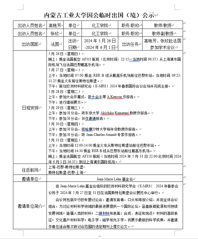 9728太阳集团高艳芳等2人因公临时出国(境)公示