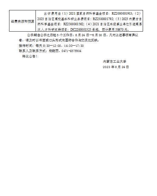 9728太阳集团关于白叶飞一行4人赴蒙古国科技大学参加学术会议的公示